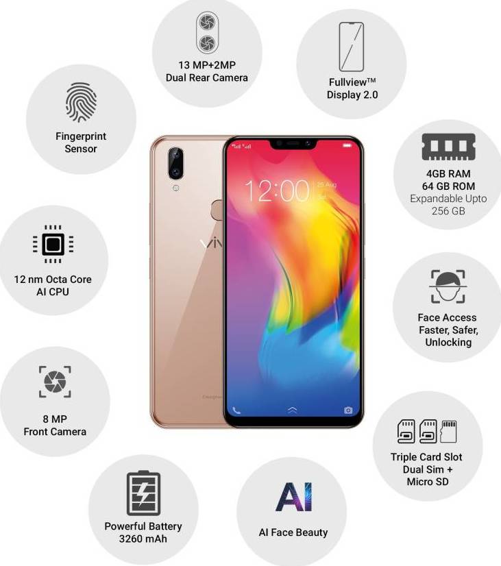 | Système opérateur | Android 8.1 (Oreo) + FuntouchOS 4.0 | Android 8.1 (Oreo) + FuntouchOS 4.0 |