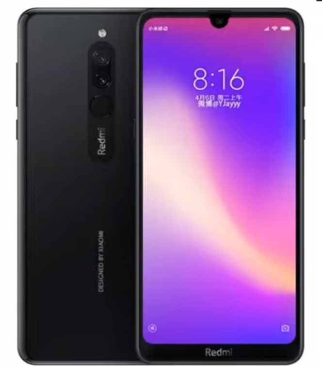 Xiaomi Redmi 8 a une apparence très attrayante. Sur la partie avant se trouve un grand écran, qui occupe 81,9% de la surface utilisable. Redmi 8 suit les tendances de la mode : la caméra frontale est soigneusement placée dans l'encoche en forme de goutte d'eau. Au bas de l'écran, sur un "menton" assez large, vous pouvez voir l'inscription Redmi.