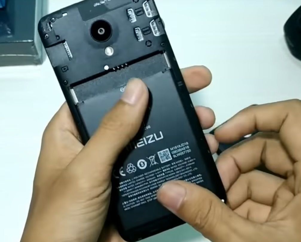 Les fonctionnalités ne s'arrêtent pas là. Pour les modèles populaires, la marque Meizu a fabriqué une batterie amovible de 3 000 mAh, respectivement, le couvercle est retiré. Le panneau est fait de matériaux en polycarbonate et a une texture ondulée interrompue dans la zone du logo de l'entreprise.