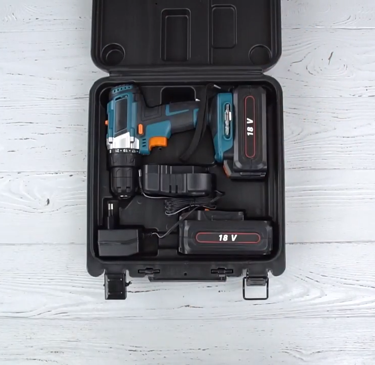 La large fonctionnalité est due à la double utilisation - l'appareil peut être utilisé comme une perceuse ou un tournevis avec une marche arrière. Le mandrin sans clé d'un diamètre de 10 mm permet de serrer tout type d'embouts, perceuses. Le réglage de l'intensité du couple comporte 21 gradations, ce qui est suffisant pour un grand nombre de tâches.