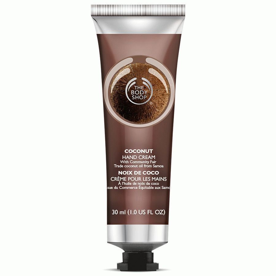 La crème pour les mains The Body Shop Cocount est très riche et grasse, avec un léger parfum et des extraits de plantes bénéfiques, sans SPF. Il convient à une application sur les mains et le corps, mais n'est pas recommandé pour le visage, malgré les assurances du fabricant.