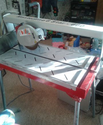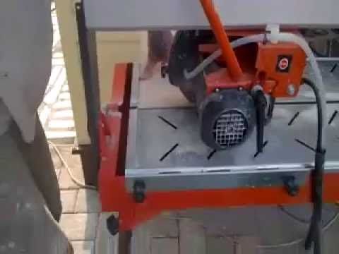 La vitesse de rotation du disque est d'une grande importance, il est donc nécessaire de se protéger des fragments volants de céramique et d'émail. Le ralenti n'a pas d'importance. La puissance du moteur est très importante et doit être de 2 kW en moyenne. Le diamètre du disque de coupe commun dépend de la puissance de travail du produit. Plus le disque est grand, plus le matériau coupé est épais.Avec un disque de 350 mm installé, il coupe facilement des matériaux de 135 mm.