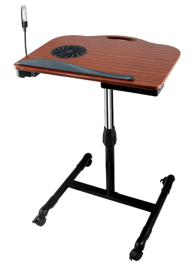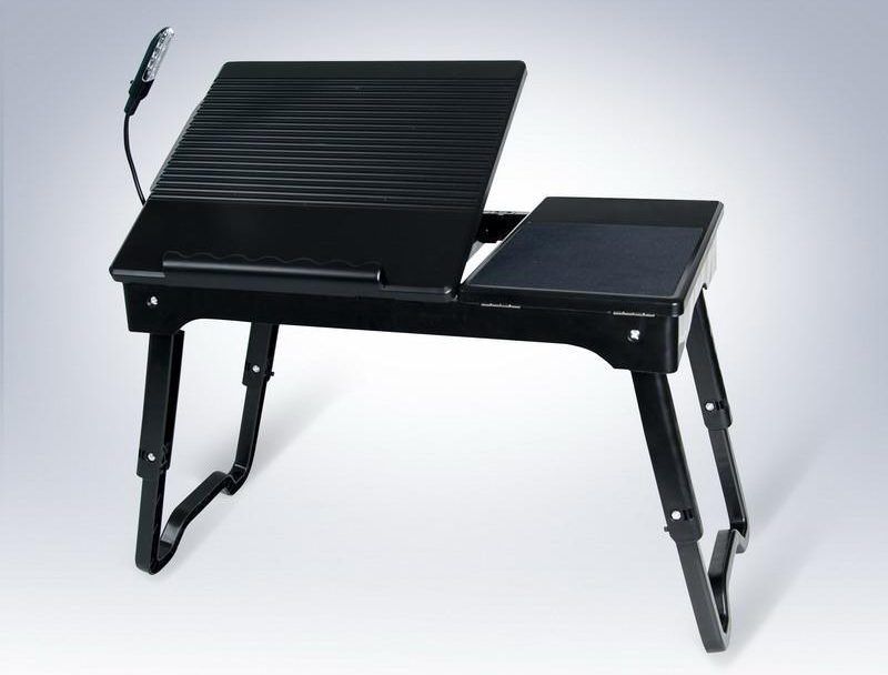 Ici, vous pouvez régler la hauteur pour absolument n'importe qui. Le ventilateur dans la conception est placé sur le côté gauche. Ceci est fait parce que la plupart des modèles d'ordinateurs portables ont une carte vidéo située au même endroit. La nuit, la lampe intégrée, qui fonctionne sur piles, deviendra un assistant indispensable. De plus, l'accessoire permet de ranger divers ustensiles d'écriture, et peut également être déplacé grâce aux roulettes intégrées. Son coût est de 2400 roubles.
