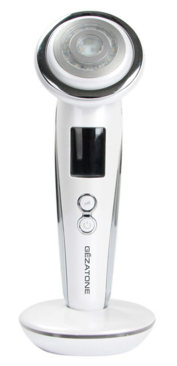 L'appareil le plus cher du classement est équipé de 6 fonctions pour le rajeunissement complexe de la peau du visage : lifting par radiofréquence, chromothérapie, vibration, EMS, galvanisation et refroidissement tonique. L'utilisation de toutes les techniques vous permettra de nettoyer, de renforcer et de raffermir la peau, de modeler un beau contour du visage, d'éliminer la flaccidité et les rides et d'éliminer les reliefs irréguliers de la peau. L'emballage comprend un support avec lequel il est pratique de ranger l'appareil sur la coiffeuse.