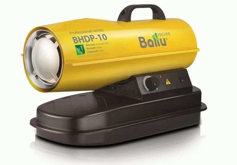 Le pistolet thermique BaIIu BHG-10 appartient au type à gaz. Ce pistolet thermique est un puissant contrôleur de chaleur professionnel et est presque insensible aux fluctuations de température. L'équipement fonctionne au gaz liquéfié. La surface de chauffage est de 300 m². Le modèle coûte environ 4000 roubles. Pour ce prix, le constructeur propose une puissance de 10 kW.
