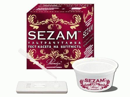 Le test Sezam est une cassette de test ultra sensible permettant de déterminer la grossesse 7 jours après la fécondation, c'est-à-dire avant le délai. Le principal principe de fonctionnement de base ici est la détermination du niveau de gonadotrophine chorionique humaine, c'est-à-dire d'hCG dans l'urine d'une femme. HCG sera produit activement et rapidement par le chorion de l'œuf fœtal et apparaît dans l'analyse déjà 7 jours après la conception. L'ovule est déjà fécondé et en développement, et cela s'accompagne de la libération d'une hormone, la majeure partie de cette hormone se trouvant dans l'urine du matin. Grâce à cette cassette de test, il ne peut y avoir d'erreurs exactes, SEZAM fournit la détermination la plus précise de la grossesse, pour une telle mesure, il y a une membrane spéciale dans le boîtier en plastique.