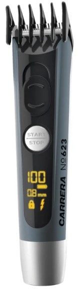 Le fabricant qualifie ce modèle de tondeuse professionnelle pour moustache et barbe. La tondeuse dispose d'une alimentation autonome avec possibilité de travail actif pendant une heure. La largeur du couteau de coupe est de 34 mm et le nombre de réglages de longueur est de 48 - c'est le plus grand indicateur parmi les appareils de ce type. L'appareil est équipé d'un indicateur de charge, a un beau design, facile à utiliser. Le kit comprend une plate-forme pour charger l'appareil, une brosse pour le nettoyage et de l'huile.