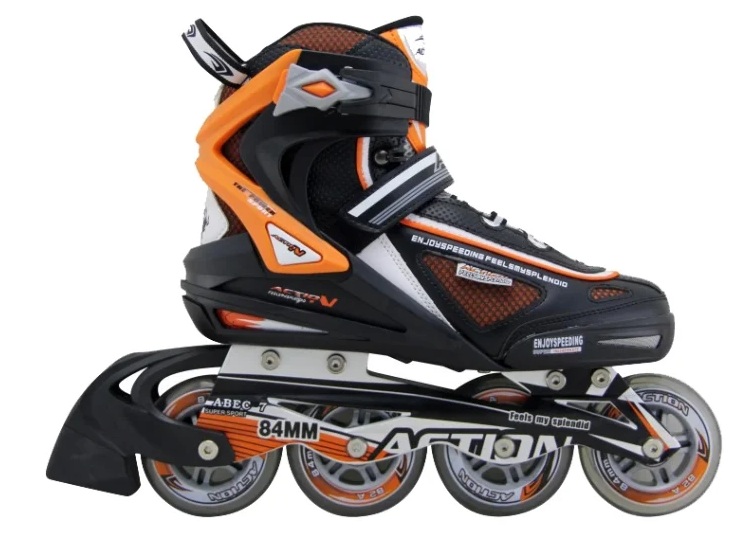 Ce modèle est destiné aux utilisateurs confirmés (amateurs de descentes rapides).Le confort de conduite est assuré par une botte souple, un cadre en aluminium, un frein au talon, une ventilation et un amortisseur. Quant aux roues, le diamètre de chacun des 4 éléments est de 8,4 cm, la rigidité est de 82A, les roulements chromés ABEC 7. La fixation du pied est classique, comme dans la plupart des patins (laçage rapide, boucle supérieure, sangle de talon). Couleurs et tailles disponibles pour s'adapter à tous les sols.