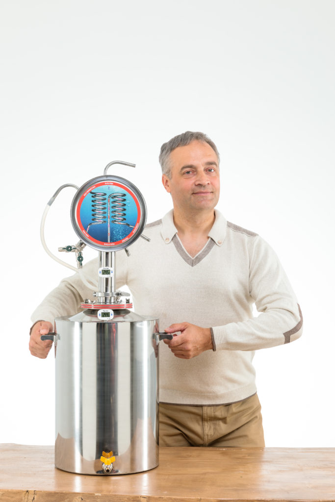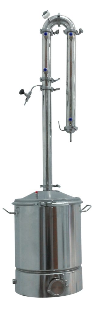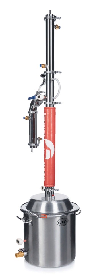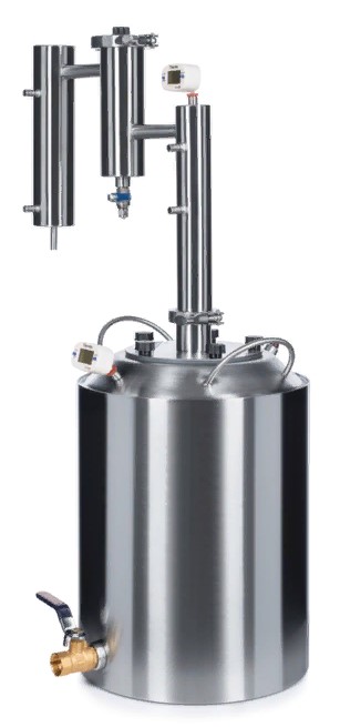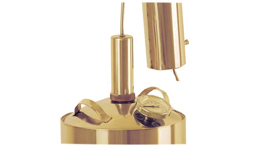 Le réservoir est livré avec un double cuiseur vapeur, un compteur d'alcool, des tuyaux en silicone et un panier à gin. Couvercle - amovible sur celui-ci doté d'une soupape de surpression.