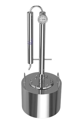 Quant au cube de distillation, il est en acier inoxydable de qualité alimentaire. Le fond vous permet d'utiliser l'appareil sur toutes les surfaces de cuisson, y compris la céramique et l'induction. Le diamètre du réservoir dépend de sa contenance, un cube de 20 litres a un diamètre de 29,9 m.