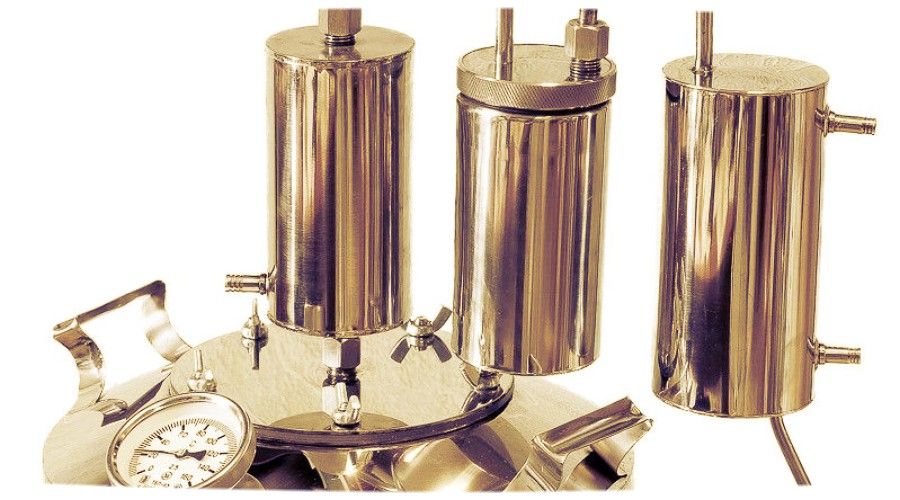 Non seulement les alambics Moonshine et les mini distilleries peuvent produire la boisson convoitée. Récemment, les alambiks gagnent en popularité - des structures en cuivre, notamment un cube de distillation, un casque à dôme, un tuyau de vapeur et un serpentin refroidi. Peut être complété par une colonne.