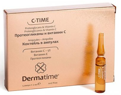 - Proteoglikanlar ve C vitamini - Ampullerde kokteyl, C-Time Dermatime. Güçlü canlandırıcı, antioksidan, nemlendirici ve gençleştirici etkiye sahip bir konsantredir. Kollajen ve elastin sentezini uyarır, cilde taze bir görünüm verir, kızarıklığı giderir. Rosacea'ya eğilimli olanlar da dahil olmak üzere tüm cilt tipleri için uygundur. Baz kremi uygulamadan önce günlük veya haftada birkaç kez tek başına veya baz olarak kullanılabilir. Fiyat: 5 ml'lik 2 ampul için 1800 ruble.