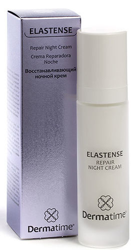 - Canlandırıcı gece kremi Elastense Dermatime, elastin biyopeptidleri ile canlandırır ve yeniler, kırışıklıkları yumuşatır, yüz hatlarını modeller. Etki hemen fark edilir. Krem, alerjiye yatkın olanlar dahil tüm cilt tipleri için uygundur. 40 ml'lik bir tüpün maliyeti 4000 ruble.