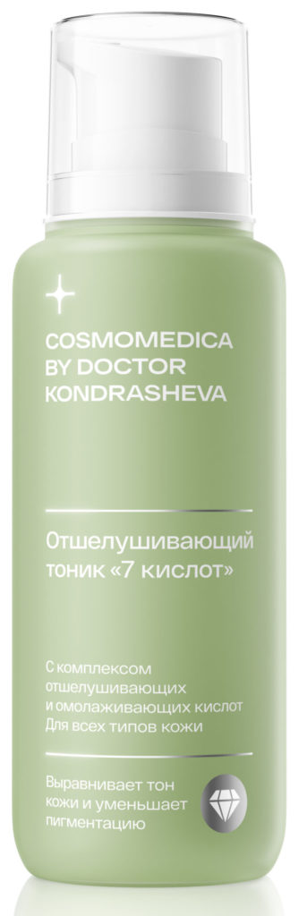 - 7 Asit Eksfoliye Edici Tonik: Normal, karma ve yağlı ciltler için tasarlanmıştır, aknedeki iltihabı azaltır, hiperkeratozu giderir ve parlatıcı etkisi vardır. Anahtar varlıklar şunları içerir: laktik, süksinik, malik, tartarik, glikolik, sitrik, askorbik asitler, aloe jeli ve antioksidan su. 200 ml tonik maliyeti 2200 ruble.