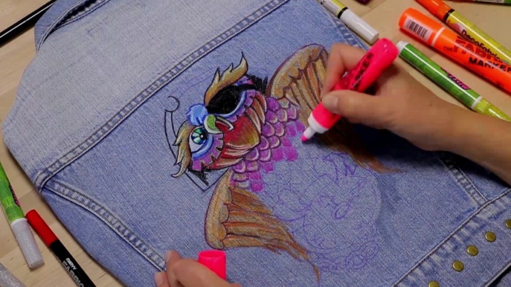 Ayrı olarak, kumaş işaretleyicilerin özel özelliklerini, özelliklerini ve özel efektlerini vurgulamaya değer. Bu enstrümanlarda kullanılan en yaygın özel efekt floresandır. Tuvalde rengi çok parlak bir şekilde vurgulamanız gerektiğinde çok popüler olacaktır.Benzer bir keçeli kalemle uygulanan çizimler güneş ışığında güzel bir şekilde parlayacaktır. Ayrıca altın veya gümüş renklerde çizgiler oluşturmak da mümkündür - bu, parıltılı veya metalik mürekkeplerin kullanılmasını gerektirir. Küçük parıltılar içeren mürekkebi de kullanabilirsiniz.