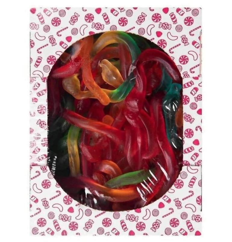 Neredeyse tüm çocuklar tatlı yılanlardan memnun. Büyük bir kutu farklı türlerde bir palet içerir: elma, armut, çilek, kızamık, kiraz, ahududu, böğürtlen, yabani dut, tutti frutti, limon, portakal, şeftali, muz, ananas, kavun.