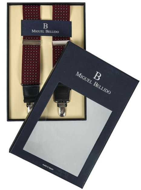 İspanyol markanın şık aksesuarı bordo renginde küçük bir desenle yapılmıştır. Her şeridin genişliği 3,7 cm'dir, uzunluğu geniş metal klipsler kullanılarak ayarlanabilir.
