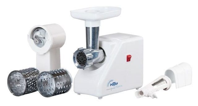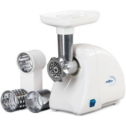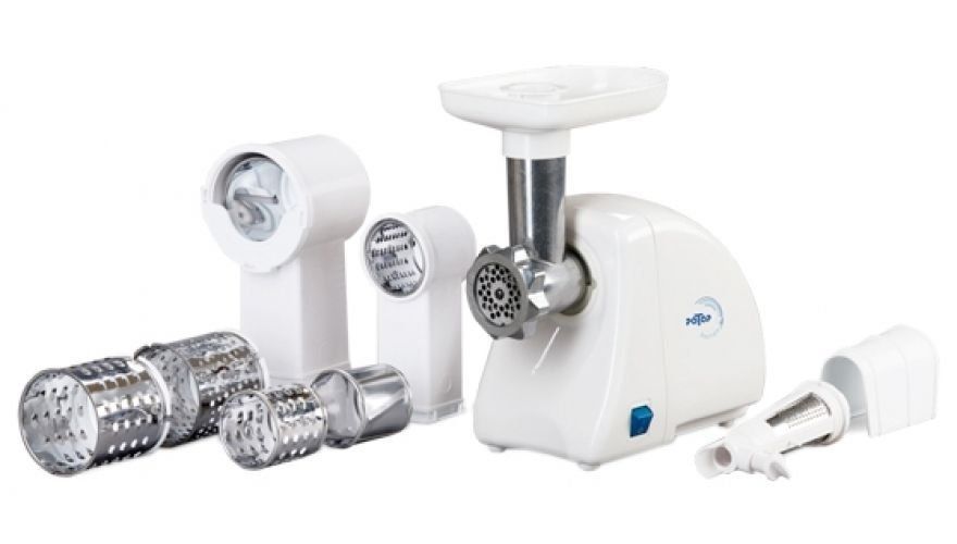 Elektrikli kıyma makinesi ekonomik tipe aittir, gövdesi dayanıklı plastikten yapılmıştır. Cihaz dakikada 600 gram et işlemeye izin verir. Cihaza kıyma diskleri ve sebzeler için rende dahildir.