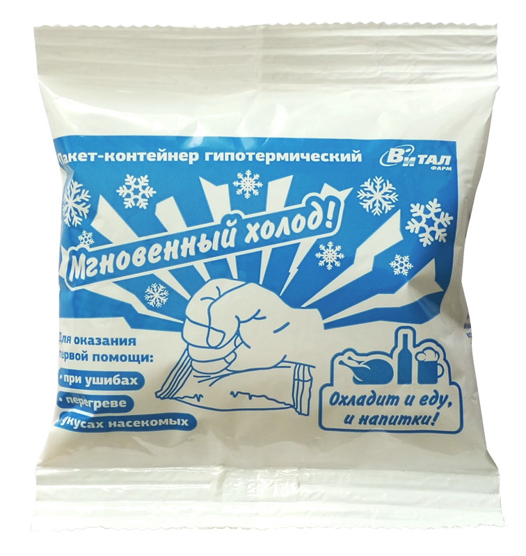 - Paketler. Hipotermi paketleri en yaygın olarak tıbbi ortamlarda kullanılır, ancak spor doktorları bunları yarışma sırasında sporculara da uygular. Biri su, diğeri etken madde (çoğunlukla amonyum nitrat) içeren 2 poşet içeren bir ambalajdır. Torbaya kuvvetle bastırırsanız çalışmaya başlar, sonra her iki madde karışır.Bu tür çantalar pratiktir, önce dondurulmaları gerekmez, kullanım sırasında kendinize zarar verme riski minimumdur.