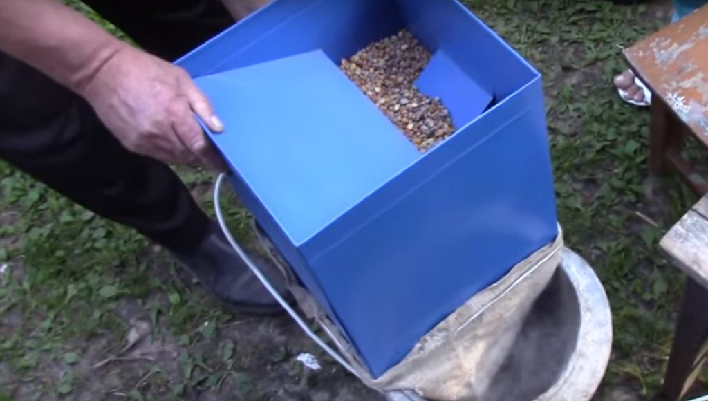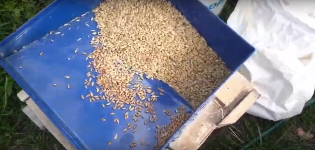 Çoğu zaman, kapsamı bir ev veya küçük bir çiftlik olan makineler bu şekilde inşa edilir: ezilmiş tahıl alttan dökülür, makine, sahibinin kendisi tarafından yapılan bir standa, hazırlanmış yem için bir konteynere yerleştirilmelidir. , ve standda bir delik. Veya bir kovaya konan seçenekler var.