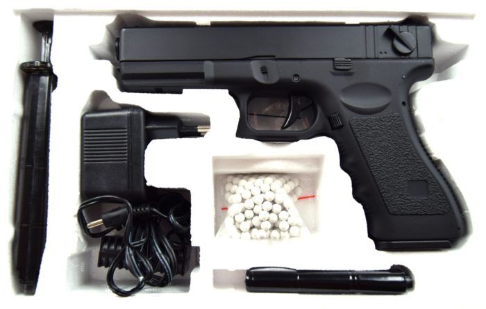 Standart donanım (tabanca, şarjör, mermi, top, pil + şarj cihazı, kullanım kılavuzu).