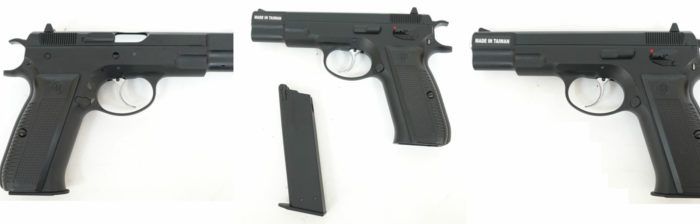 Menşe ülke Tayvan (KJW). Savaş prototipi Çek altı kalibreli CZ 75 idi. Güç türüne göre - bir gaz tabancası, propan-bütan üzerinde çalışır. 6 mm kalibreli 24 plastik top mermi kapasiteli şarjör. Tabancanın gövdesi ve sürgü, en aktif oyun serilerinde (birden fazla sezon geçişi) bile uzun hizmet ömrü sağlayacak dayanıklı yüksek kaliteli metalden yapılmıştır. Saniyede 100 metreye kadar atış hızına sahip yarı otomatik ateşleme modu.