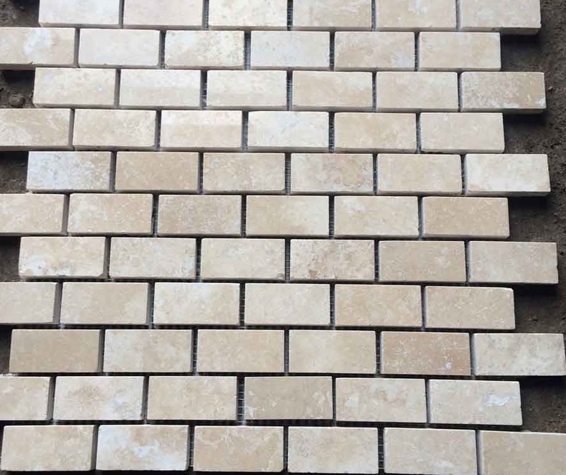 Bu örnek, tuğla işçiliğini taklit eden 30,5 x 30,5 cm ağ gözüne yapıştırılmış 2,3 x 4,8 cm doğal traverten parçalarıdır. Model, damarlı ve dolgulu gözenekli "klasik hafif" traverten kireçtaşından yapılmıştır. Üretici - Türkiye, cilalı yüzey, kesim tipi - Wein kesim, gözenek dolgusu vardır. Bir modülün toplam ağırlığı 25 kilogramdır.Perakende zincirleri için önerilen maliyet 5400 ruble.