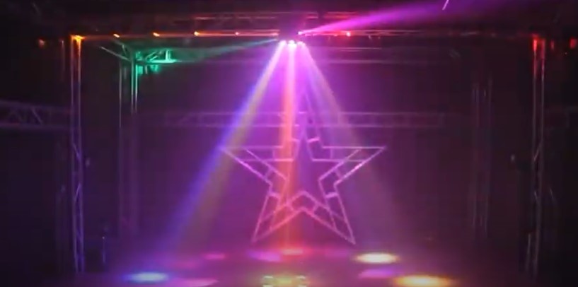 Kırmızı, mavi, mor ve yeşil lazer yayıcılar, sıvı bir gökyüzü ve çok renkli titreşim efekti sağlar. Model 15 DMX kanalı ile donatılmıştır, bir flash sürücü bağlamak mümkündür. Kasanın tasarımı, cihazı tavanın altına veya herhangi bir yüzeye yerleştirmenize izin verir ve dahili pil, birkaç saat kesintisiz çalışmasını sağlar. Menzili 25 metreye ulaşan uzaktan kumandalı model. Karmaşık desenler üretir, zengin renklere sahiptir ve sese duyarlıdır.