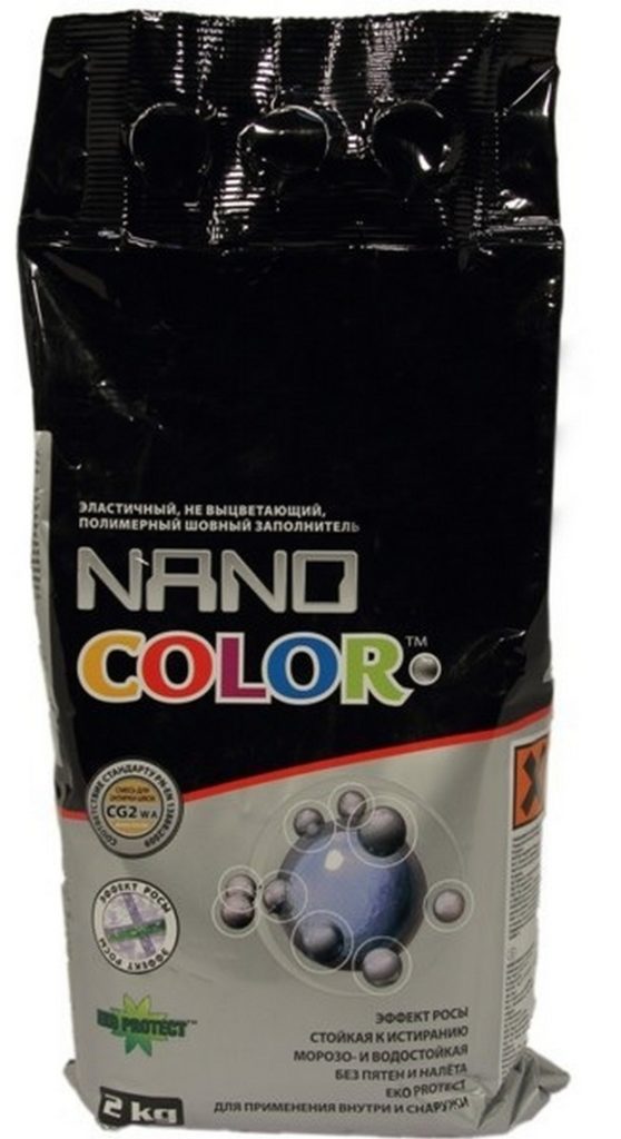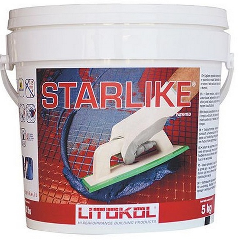 Bu dolgu maddesi (gümüş parıltılar hariç) antibakteriyel, su itici, dona dayanıklı özelliklere sahiptir. Yüksek asitli maddelere karşı direnç ayrı ayrı çalıştı.Seramik karolara ve cam mozaiklere uygulanabilir. Kompozisyonun rengi düz gridir. Perakende zincirleri için önerilen maliyet 3.700 ruble.