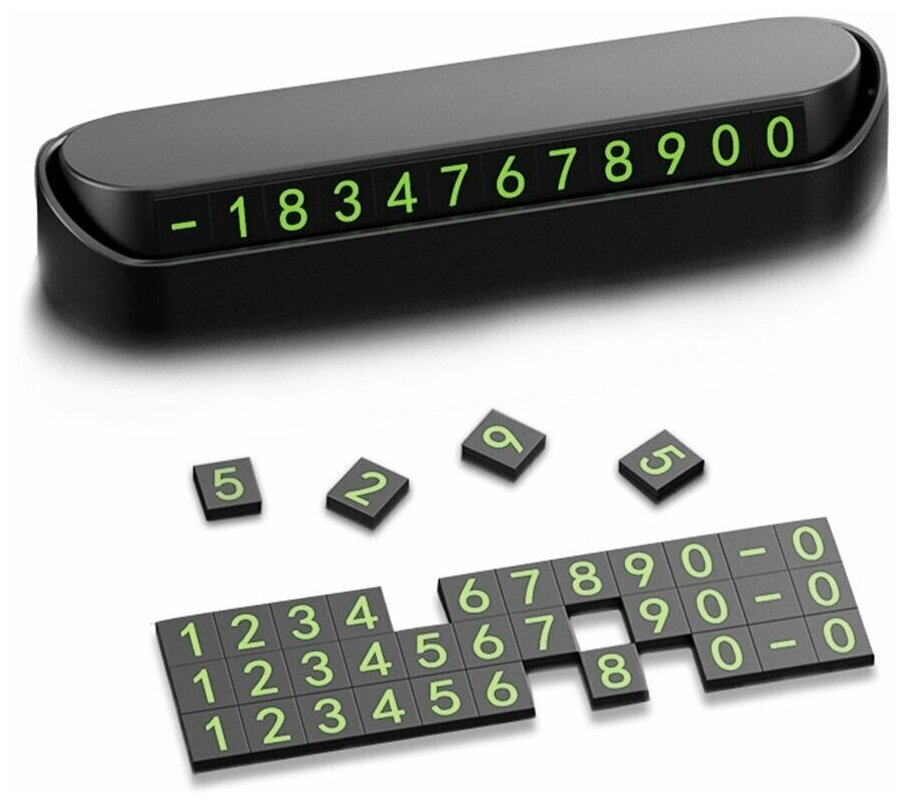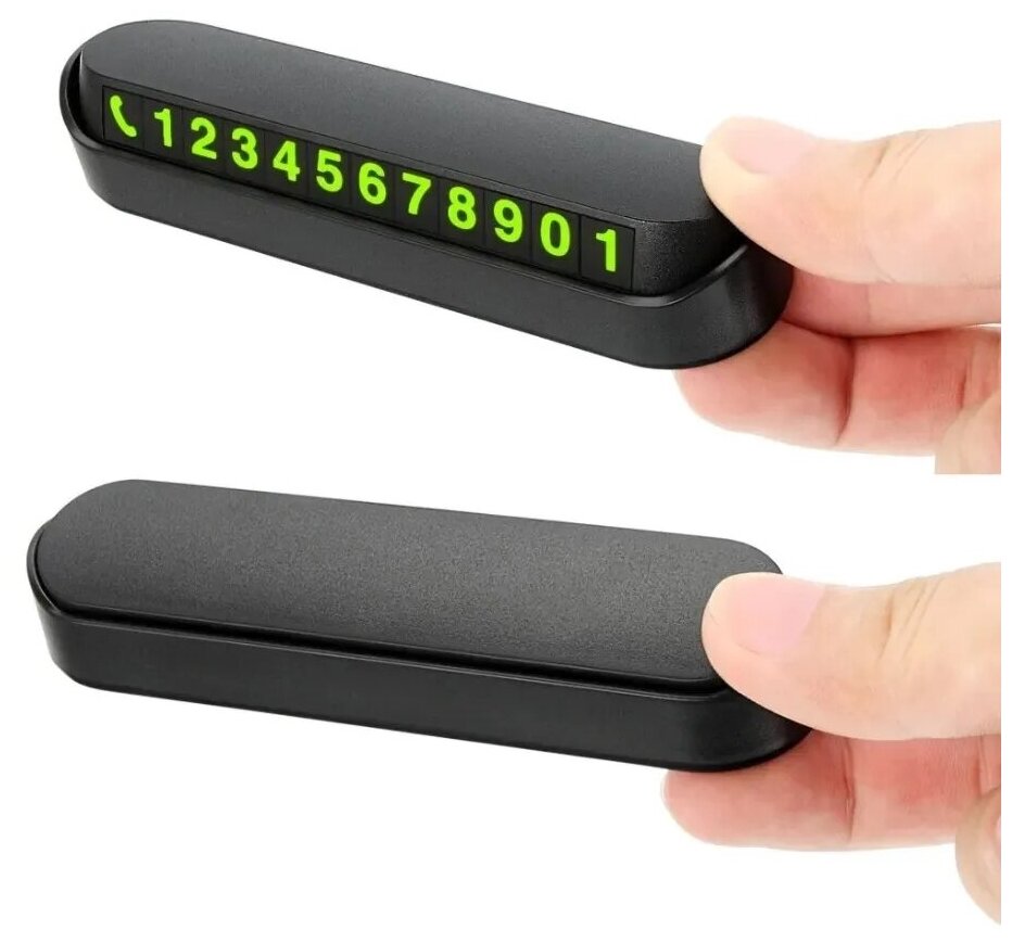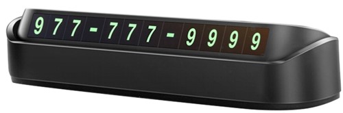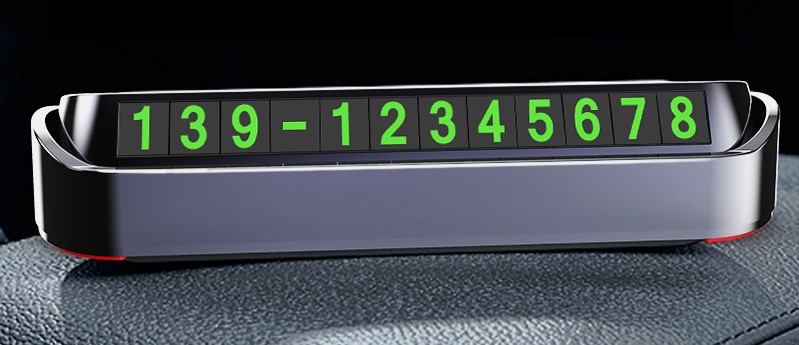 Işıldayan bir kaplamaya sahip numaralara sahip bir kartvizit, karanlıkta parlıyor ve solmaz. Klasik şekil herhangi bir arabaya sığacak. Manyetik bazda 8 set sayı ile birlikte gelir. Panelin üst kısmında yer alan buton sayesinde gerektiğinde numaranın gizlenmesini mümkün kılmaktadır. Boyutlar: 12.0x4.7x2.4 cm Ortalama fiyat: 330 ruble.