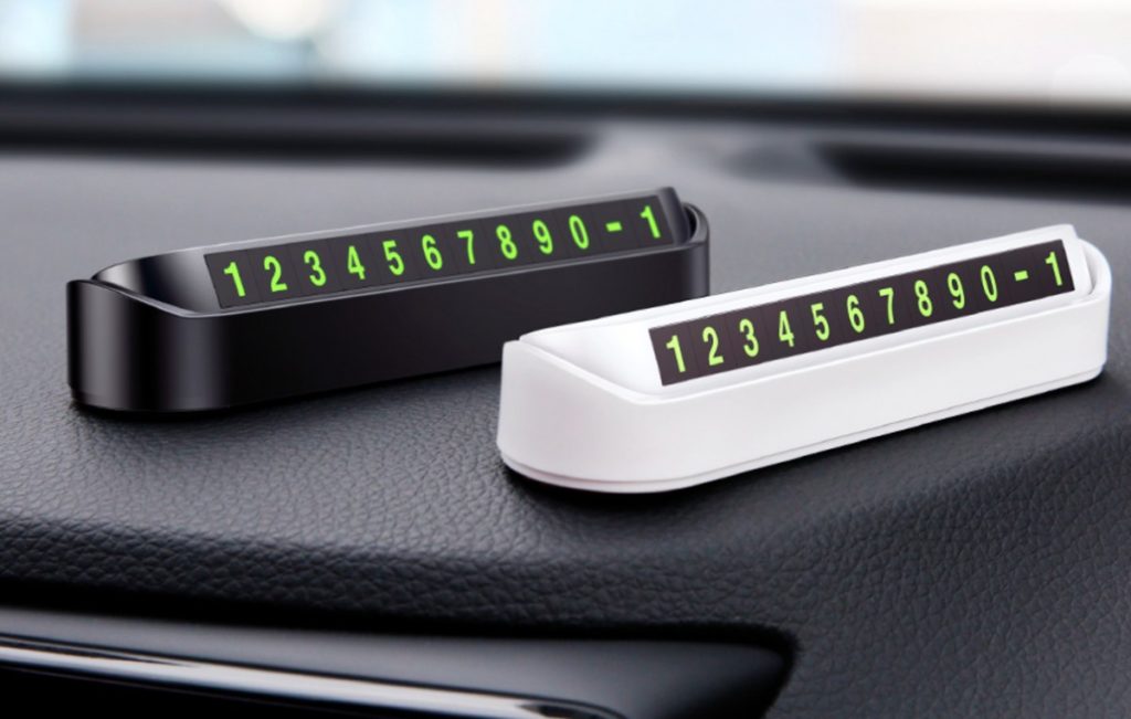 Kullanışlı ve şık bir geçici park kartı, müdahale eden arabanın sahipleriyle hızlı bir şekilde iletişim kurmanıza olanak tanır. Kullanımı oldukça kolaydır, çift taraflı bant kullanarak panele yapıştırabilirsiniz. Gövde alüminyumdan yapılmıştır, sayılar ışıldamaktadır. Set, sayılarla manyetik plakalar içerir. Maliyet: 690 ruble.