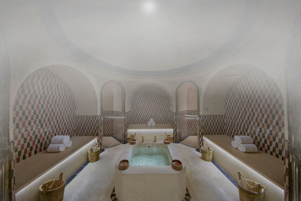 Konukların buhar odasını ziyaret ettikten sonra serinlemeleri için aydınlatmalı, ısıtmalı ve sürekli filtrelemeli büyük bir havuz bulunmaktadır.