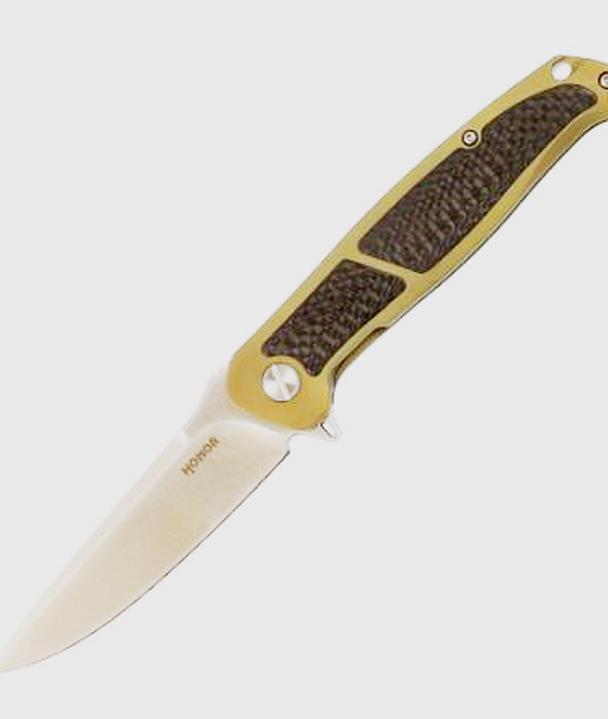 Yakın dövüş silahları için geçerli değildir. Maliyeti ne olursa olsun, mülklerinde en iyisine sahip olmaya alışmış olanlar için mükemmel bir hediye. Modelde fırfırlar yok, sadece saf işlevsellik var. Üretici ergonomiye büyük önem verdi. Açık durumda, ürünün uzunluğu 22,8 cm'dir, hem güçlü bir erkek avuç içine hem de minyatür bir kadın eline mükemmel uyum sağlar. Turistler, avcılar, balıkçılar, bahçıvanlar - amatörler, ustalar için uygundur. Bıçak, yeterli sertlikte toz çelikten yapılmıştır. Bileme gerekli değildir. Sap titanyum alaşımından yapılmıştır. Boyarken, elektrokimyasal eloksal yöntemi kullanılır. Sonuç, eskitilmiş bronz rengidir.