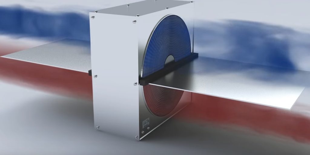 Çalışma prensibi hareketli bir dampere dayanmaktadır. Dışarı çıkan hava, gelen akışın daha sonra bir damper tarafından yönlendirildiği bölmenin ayrılmış bölümünü ısıtır.