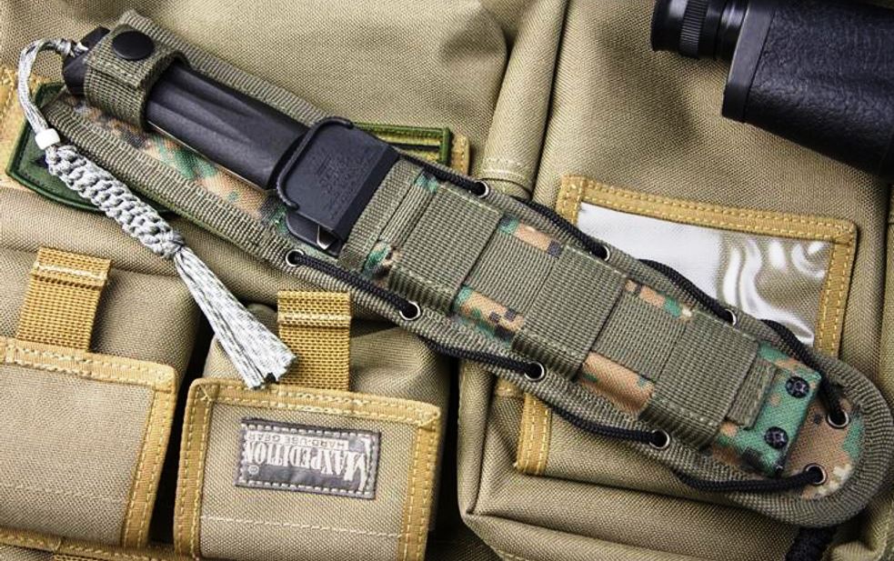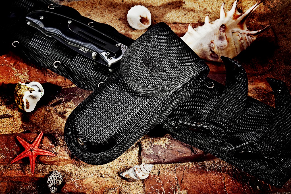 Bu kılıf, bıçağı sap aşağı veya yukarı olacak şekilde taşımanıza izin verir. Kemere rahatça yerleştirilir ve uyluğa ek bir sabitlemeye sahiptir. Ana özellik, çok işlevli bir naylon süspansiyon ve üzerine yerleştirilmiş cam dolgulu poliamidden yapılmış yüksek teknolojili bir astardır. Ek bir özellik, tuzakların ve diğer cihazların üretimi için özel işlemler sırasında ihtiyaç duyulabilecek bir buçuk metrelik paracord kordonunun varlığıdır.