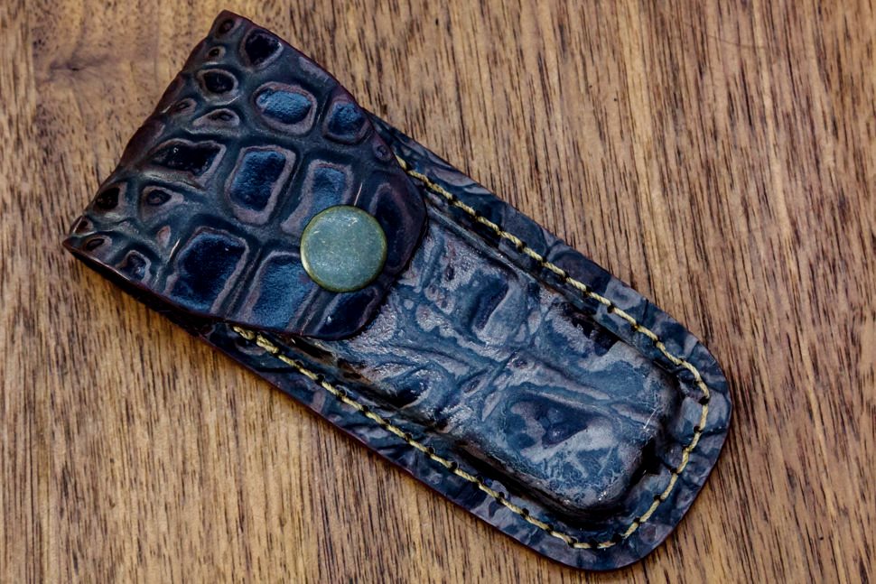Ürünlerin imalatında üretici sadece hakiki deri kullanır ve bu nedenle ürün sağlam, güvenilir, dayanıklı ve pratiktir. Bu çanta katlanır bıçakları taşımak için uygundur ve görünümü bir timsah derisine benzer. Model, kayışa hem dikey hem de yatay olarak bağlanır. Kahverengi olarak üretilmiştir.