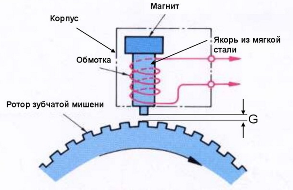 Sabit bir manyetik alana park ederken, mikro devrede dinlenme fazının özelliği olan belirli bir şekle sahip bir sinyal üretilir. Çark, algılama elemanını geçerek dönmeye başladığında, ayar diskinin dişleri veya mıknatıslanmış noktaları geçer. Buna göre, manyetik alan değişir ve mikro devre, dijital olarak kontrol ünitesine iletilen yeni bir sinyal üretir.