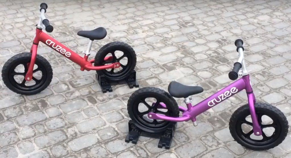Bu tür bir denge bisikleti, çok küçük çocuklar için uygun olan 3 tekerlekli bir bisikletten daha büyük çocuklar için 2 tekerlekli bir denge bisikletine dönüştürülebilir.