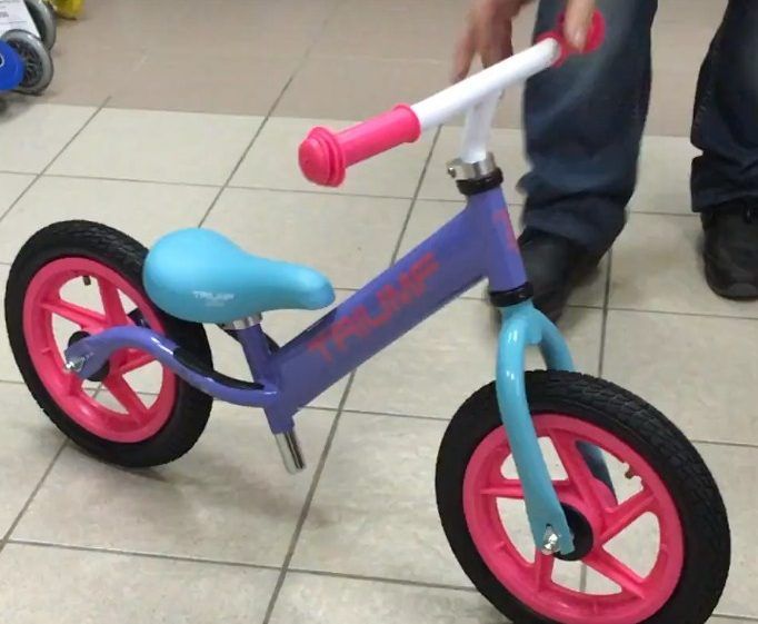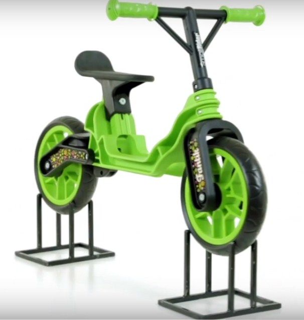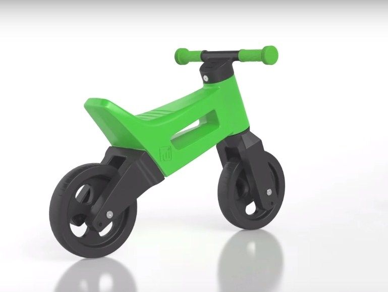 Denge bisikleti, parlak bir renge sahip yüksek kaliteli plastikten yapılmıştır. Lastikler tek parçadır, dayanıklı malzemeden - köpüklü polivinil klorürden yapılmıştır.