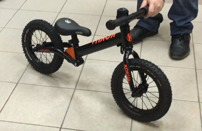 Rahat bir seleye sahip bir denge bisikleti, jantında üretici logosu bulunan şişirilebilir tekerleklere sahiptir. Üreticiler, nikeli hafifçe kavisli hale getirerek uygun lastik şişirme işlemi gerçekleştirdiler.