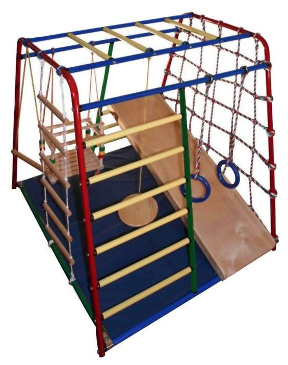 - Merdivenler. Genellikle İsveç duvar tipine göre yapılan bu cihazlar, çocuk oyun komplekslerinde sıklıkla görülebilir. Çocuklar, daha hızlı ve daha yükseğe tırmanacak bir yarışma düzenleyerek onlara tırmanmayı severler. Bu tür merdivenler gücü ve dayanıklılığı eğitir, merdiven büyükse yükseklik korkusunun üstesinden gelmeye yardımcı olur ve vestibüler aparatı eğitir.