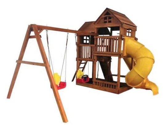 460 x 395 cm boyutlarında ve 290 cm yüksekliğinde yüksek kaliteli cilalı ahşaptan yapılmış tam teşekküllü oyun seti birçok kullanışlı unsurla donatılmıştır. Kompozisyon bir salıncak, halkalar, merdivenler, bir slayt, bir ip, bir tırmanma ağı, bir ev içerir. GOST 52169-2012'ye karşılık gelir.