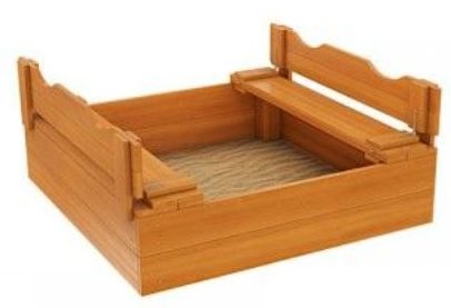 Klasik ahşap sandbox'ın montajı kolaydır ve yüksek kalitededir. Boyut - 125 x 125 cm, yan yükseklik - 30 cm.