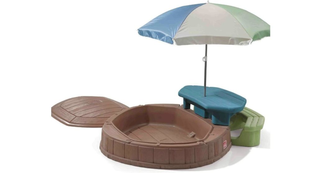 Bu, oyunlar için kompakt ama çok düşünceli bir şekilde organize edilmiş bir alandır. Kum havuzu bir masa ve bir bank ile tamamlanır ve çocuğun güneş altında yanmaması için bir şemsiye koruma görevi görür. İçini temiz tutmak için bir kapakla kapanır. Dört kişi aynı anda oynayabilir. Boyutlar 177 x 144 cm, yükseklik (şemsiyenin tepesine kadar) - 176 cm.