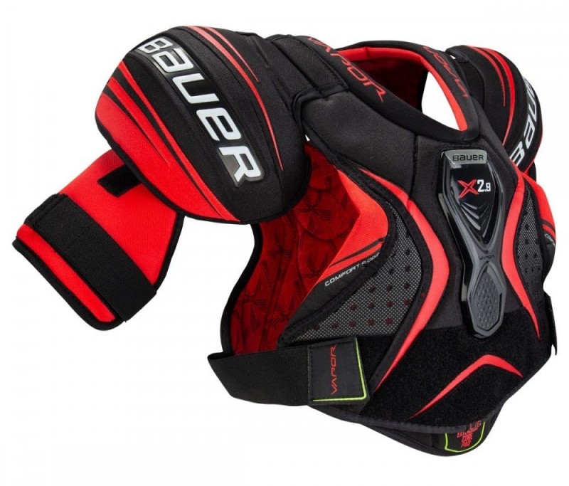 Omuz kapları darbeye dayanıklıdır ve düşmelere karşı dikkatli bir şekilde korur. Özel kaburgalar yapıya ek sertlik kazandırır, böylece ürün vücuda iyi sabitlenir ve buz üzerinde hareket ederken hareketleri engellemez. Önlük elastik kayışlarla sabitlenmiştir - Velcro. Üretici çok çeşitli boyutlar sunar.