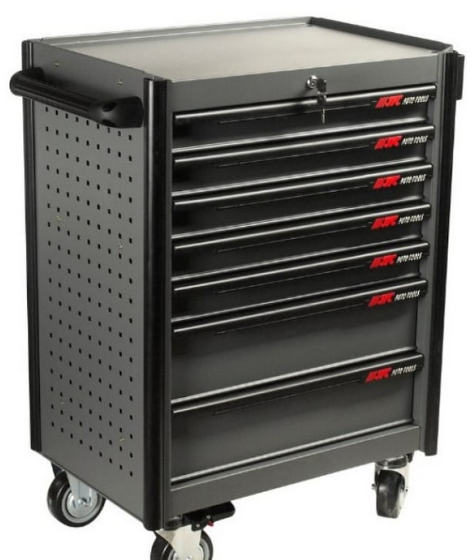 Bu yedi bölümlü araba, herhangi bir profesyonel servis istasyonuna harika bir katkı sağlar. Hem otomotiv hem de marangozluk aletleri için uyarlanabilir. Bölümler şu şekilde bölünmüştür: 5 düz ve 2 derin. Döner tekerlekler ve rahat tutamak sayesinde nakliye ile ilgili herhangi bir sorun yaşanmaz. Menşe ülke Tayvan'dır. Perakende zincirleri için önerilen maliyet 111.400 ruble.