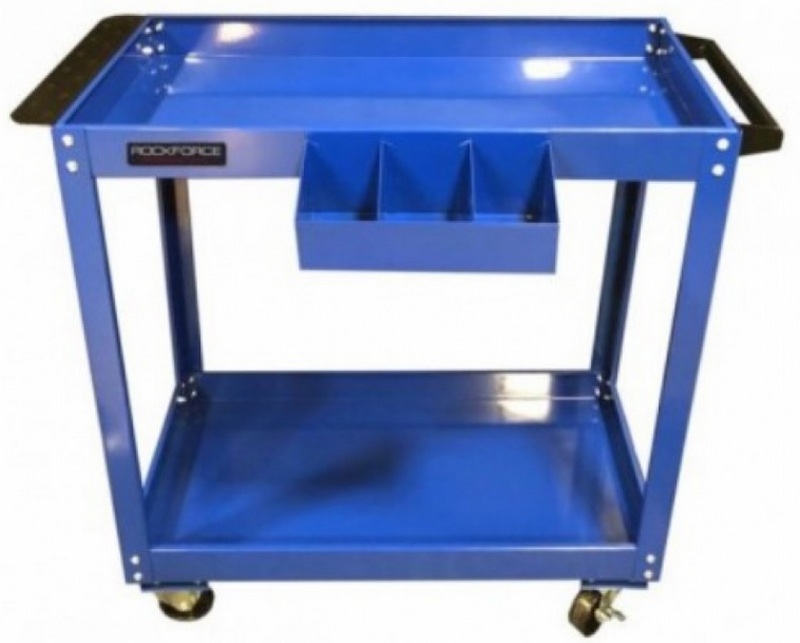 Tornavidalar için özel bir tutucuyla donatılmış iki raflı model, küçük bir araba servis işletmesi için mükemmeldir. Çeşitli aletleri kısa mesafelerde saklamak ve taşımak uygundur. Tasarım, birbirine güvenli bir şekilde kaynaklanmış metal levhalar temelinde yapılır.Toz boyama yöntemi ile boyama yapılır. Menşe ülke - Beyaz Rusya. Perakende zincirleri için önerilen maliyet 5400 ruble.