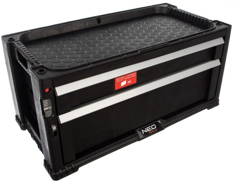 Üretici, bu modeli sadece bir alet arabası olarak değil, kişisel bir çalışma alanı ile donatılması gereken eksiksiz bir depolama sistemi olarak konumlandırıyor. Kutular, çok sayıda farklı alet, fikstür ve yedek parça yerleştirmenizi sağlar. Donanım, cıvata ve çivi gibi küçük sarf malzemelerinin saklanması için ayrı nişler vardır. Tüm çekmeceler sürgülü mekanizmalarla donatılmıştır, ayrıca bölme bölmeleri sağlanmıştır. Gövde polipropilenden yapılmıştır. Menşe ülke İsrail'dir. Perakende zincirleri için önerilen maliyet 11.800 ruble.