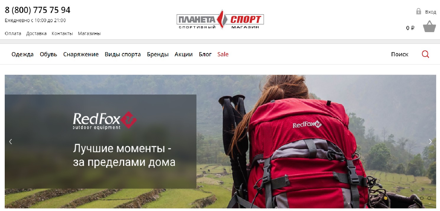 En büyük ve en tanınmış marka. Site, giyimden beden eğitimi için özel araçlara kadar tüm kategorilerden çok sayıda ürün sunuyor. Çok çeşitli giysi ve ayakkabıların yanı sıra çocuklar için spor malzemeleri.Çevrimiçi alıcılar için ek indirimler ve promosyonlar mevcuttur ve rakiplerin daha düşük maliyetli bir ürünü varsa, mağaza indirim yapmaya hazırdır. 1000 ruble üzerindeki siparişlerde ücretsiz kargo.