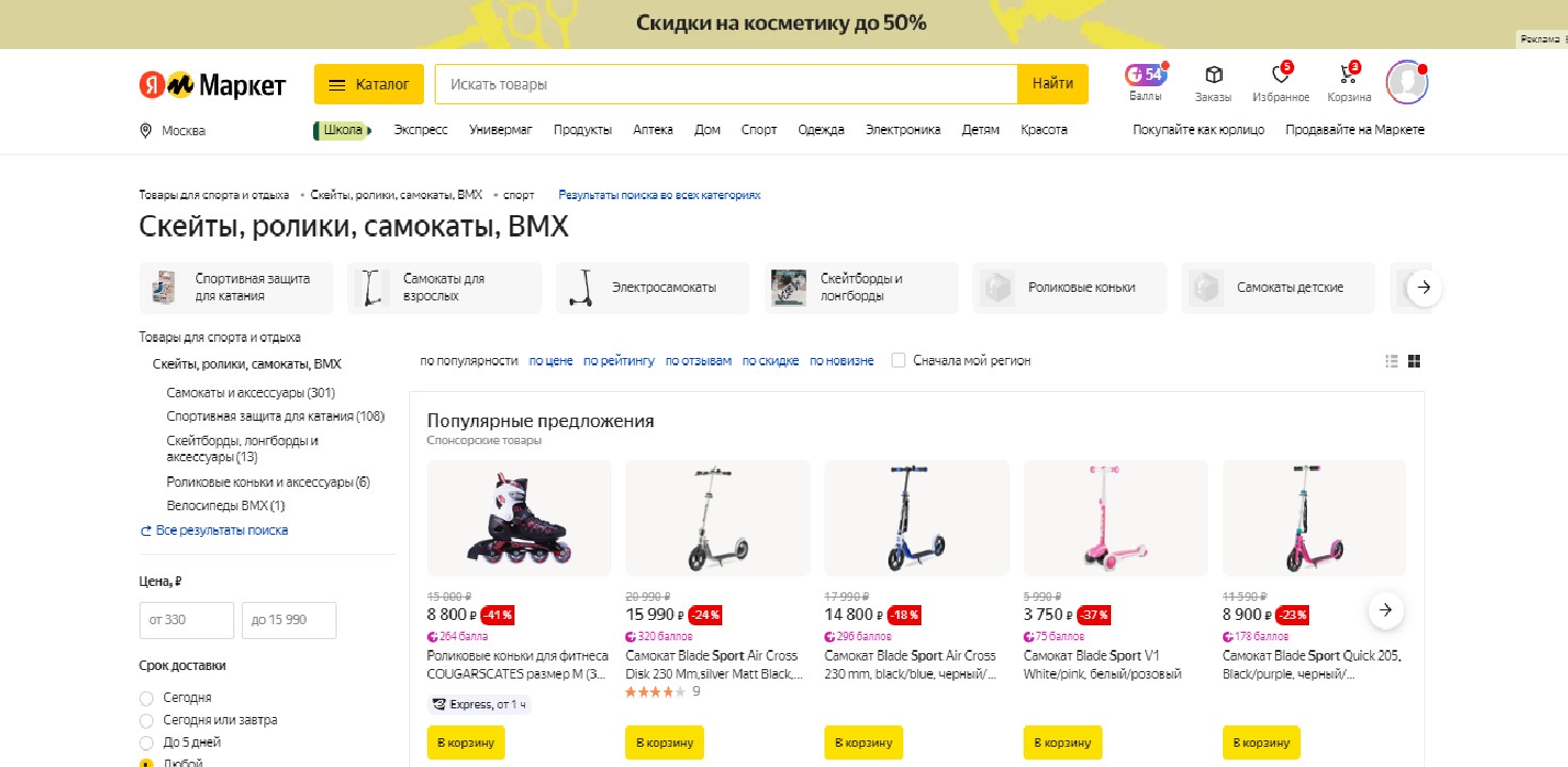 Pazar, tüm aile için beden eğitimi için çok sayıda ürün sunar. Site, uygun arama ve filtrelere sahiptir. Abonelik için özel sadakat programı. Hem teslimat noktasına hem de kurye ile hızlı teslimat.